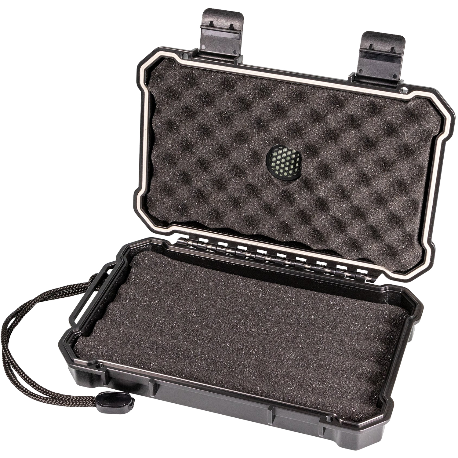 Reisehumidore von Passatore. Nehmen Sie Ihre Lieblingszigarren mit auf die Reise, Wasser- und stoßfest geschützt in einer geruchsneutralen Schaumstoffeinlage. Dank integriertem Befeuchter auch auf längeren Trips. Mit integriertem Hygrometer.