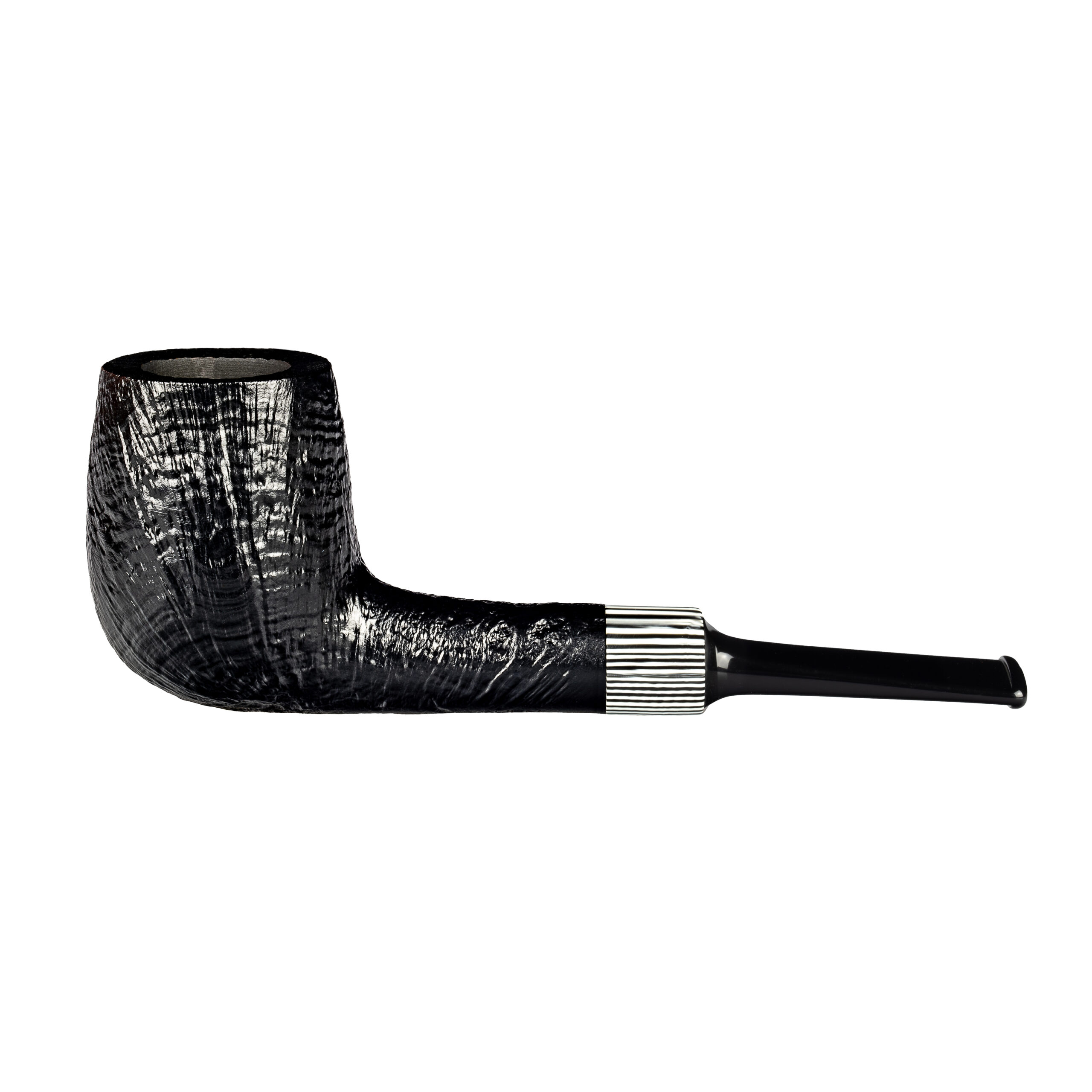 Die schwarze, sandgestrahlte Oberfläche und der auffällige Zebramusterring machen diese Pfeife zu einem Blickfang. Das schwarze Mundstück und die sechs verschiedenen Kopfformen unterstreichen ihre Vielseitigkeit. Diese Pfeife ist die perfekte Wahl für Genießer, die den rauen Charme der Natur mit einem Hauch von Eleganz verbinden möchten.